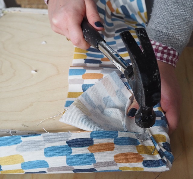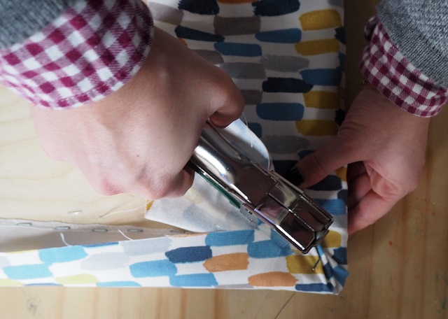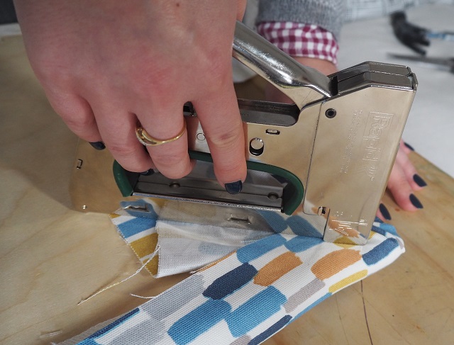 Use a hammer to make sure the staples are in as far as they’ll go! Then the trick is to go for the opposite corner to the one you’ve just stapled. This is the best way to get a smooth and tight finish.
